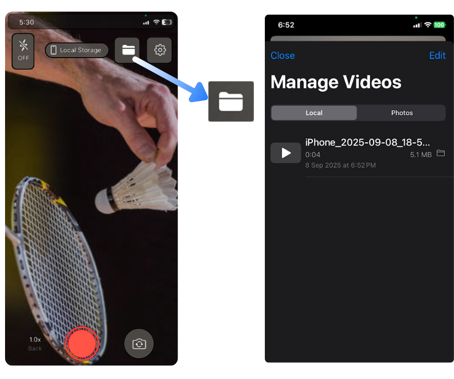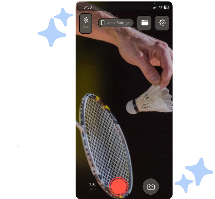 This is the app’s main camera screen, designed for speed and simplicity. Anyone can record, manage, and stay in control of their videos with ease.