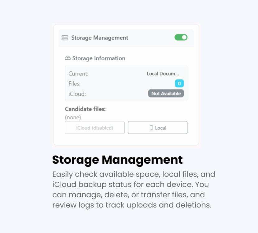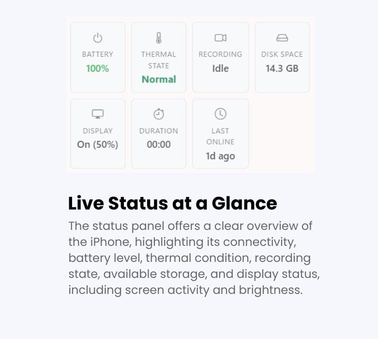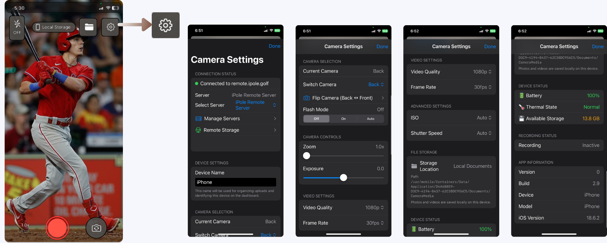 The iPole Remote Camera dashboard provides full visibility and control of multiple iPhone cameras in one place. You can check status, manage recordings, adjust settings, and track storage or activity logs with ease. Designed to be simple and intuitive, it requires no technical expertise to operate.