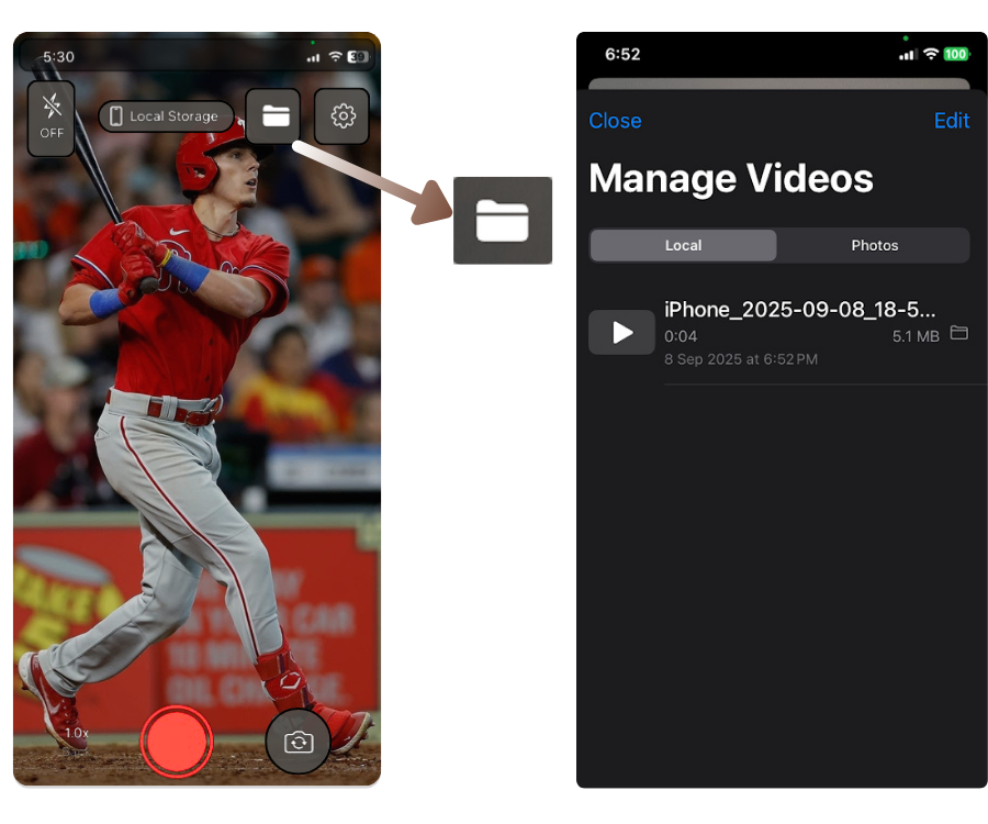 This is the app’s main camera screen, designed for speed and simplicity. Anyone can record, manage, and stay in control of their videos with ease.