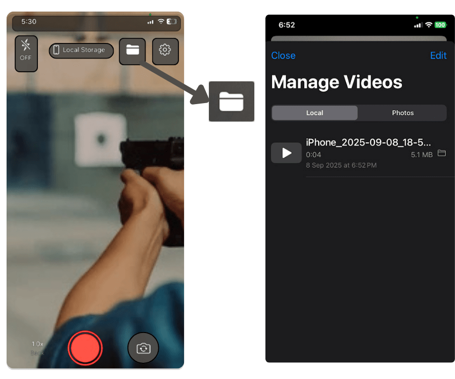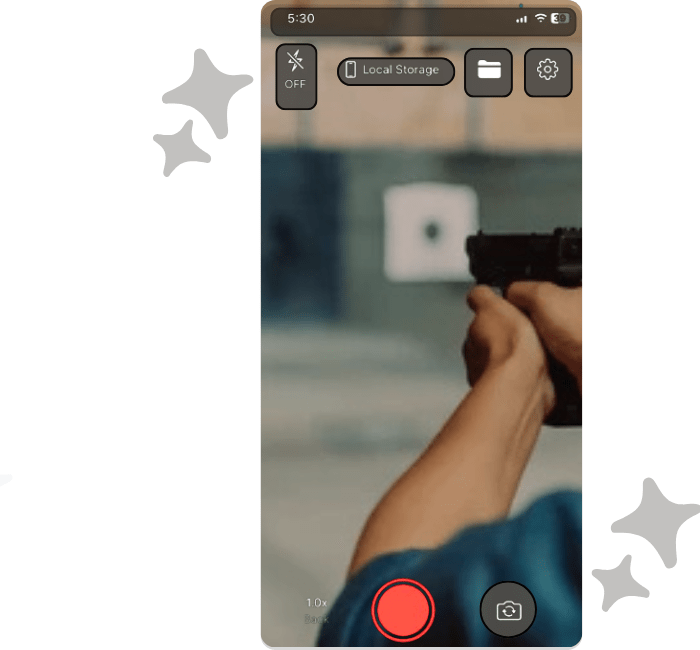 This is the app’s main camera screen, designed for speed and simplicity. Anyone can record, manage, and stay in control of their videos with ease.